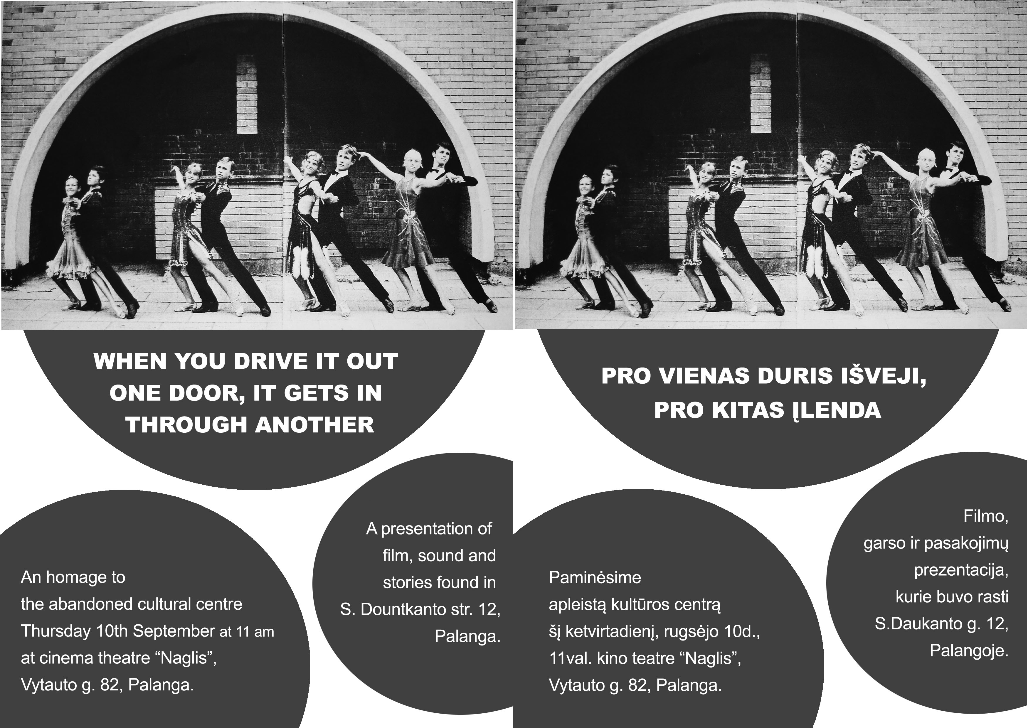 The first day of our workshop we went to the old, abandoned Cultural Centre of Palanga and we found and collected several fragments of old 35 mm film.