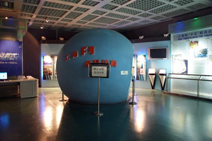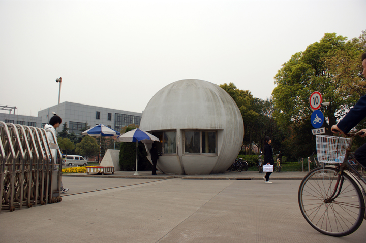 Here’s another shot of a globe. You can see it better. There is a rather intruding sign there, well-placed to grab your attention and encourage you to investigate, if you hadn’t already thought to do so. As it turns out this structure is an exhibition meant to allow you total immersion in the Shanghai experience. Unfortunately the sign is an indicator that the effect isn’t working and in fact the exhibition is broken. I don’t know, I mean the excitement of finding this edifice that was then both heightened and dashed at the prospect of an experience denied is a ride all its own. You are taken on a bit of a roller coaster experience, but your really not going to have too much time to dwell on it anyway, I just thought it might be an interesting thing for you to see. You wonder why actually, but after a while you really start to lose interest and you stop looking at it and you go on to other things.