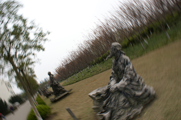 This is just some statues. When you think of it, the camera fell out of my grasp just as I was taking the photo, and the effect, I kind of like that it just sort of suggests a kind of circular situation.
